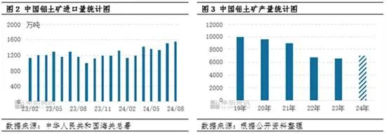 几内亚的铝土矿资源丰富,是我国最主要的铝土矿来源国。随着国内经济发展和工业化进程加速,我国对铝土矿的需求不断增长,由于国内铝土矿品位普遍低于进口矿,且近年来国内矿山产出减少,导致对于外矿依赖度不断提升,目前已接近70%。依据中华人民共和国海关总署数据公布,2024年8月中国铝土矿进口量为1554.6万吨,同比增加34.36%;1-8月进口总量为10786.37万吨,同比增加11.78%。从几内亚铝土矿进口量增加来看,几内亚雨季对于铝土矿发运量的影响,并不像预期中明显,进口增加的主要原因是几内亚有新的矿山开始出矿,不过对于目前氧化铝企业需求来看,当前铝土矿仍存在供应缺口,特别是采用国产铝土矿的产线,因矿石紧缺,多数产线停开或减产,部分企业少量进口矿调配应用,也难大规模产出氧化铝。