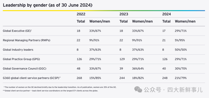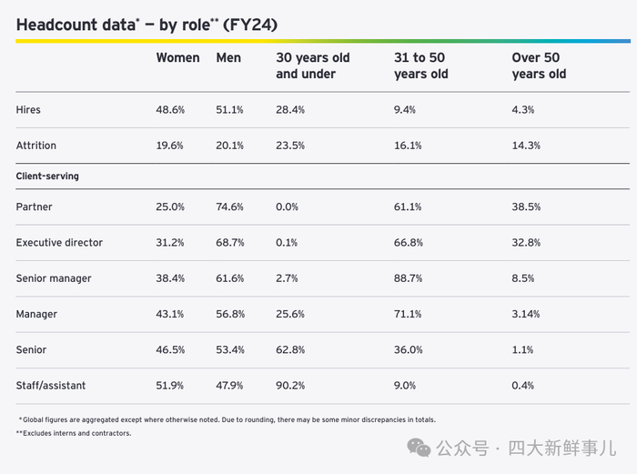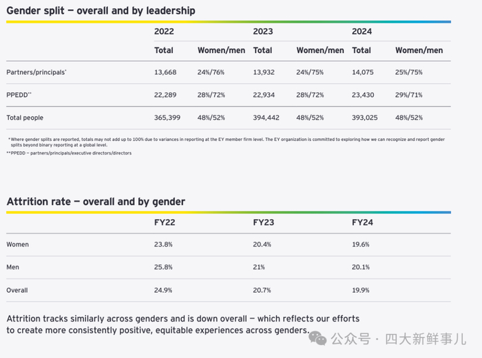 2024财年,安永全球领导人数、流失员工总数及性别比例如下: