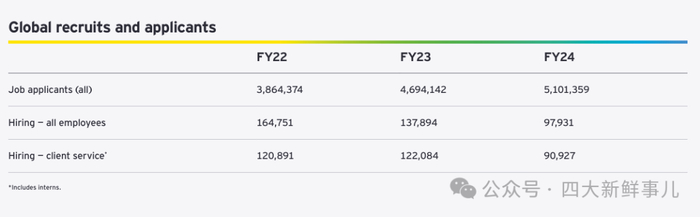 2024财年,共有5,101,359人申请加入安永,新聘任员工97,931人。