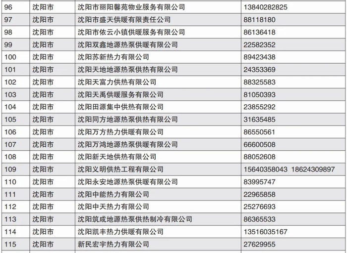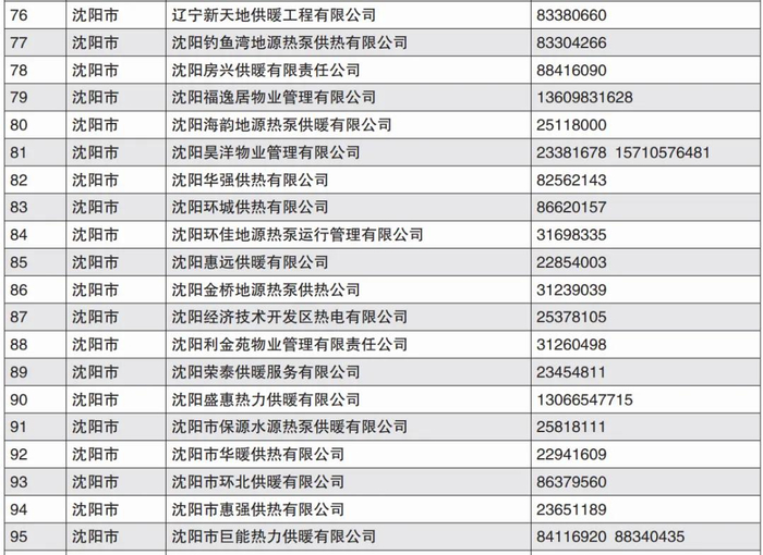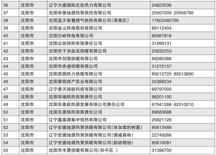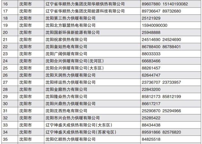 沈阳市部分供热单位