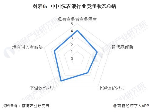 从五力竞争模型角度分析,自2008年蓝月亮研发并推出第一款大火的洗衣液产品以来,各路传统日化企业纷纷进军洗衣液市场,已形成激烈竞争格局,虽然蓝月亮在国内市场依旧霸榜,但自2020年上市以来始终净利亏损,立白、纳爱斯、宝洁等其他知名企业奋力追赶,优势差距在逐渐缩小,行业竞争依旧激烈;同时由于洗衣液市场制造技术壁垒相对不高,且不时有其他日化品企业推出洗衣液产品,打造多元品牌矩阵,因此潜在进入者威胁较高;同时在衣物洗涤护理中,虽然洗衣液相比洗衣粉在安全环保性价比上具有优势,但随着洗衣凝珠、除菌剂、衣物清洁泡泡等衣物洗护新品不断推出,洗衣液也面对较大的被替代威胁。从生产上下游看,上游化工原料是洗衣液重要供给,但洗衣液厂商自身也有一定的生产能力,因此威胁较小;而下游消费者用户的洗衣护理用品和洗衣液品牌选择较多,因此议价能力较高。