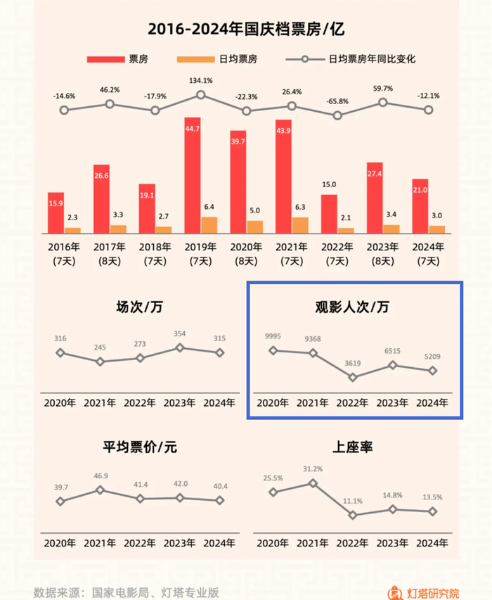国庆档高开低走不是我们希望看到的,却是情理之中必然会发生的。随着文娱产品的类型越来越丰富,随着人们生活节奏的加快和文娱时间碎片化的加剧,电影显得愈发“陈旧”,进场人次呈现下跌走势。