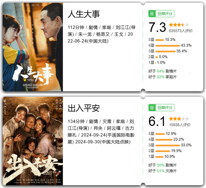 刘江江的前作,也是其处女作《人生大事》在2022年是惊艳业内外的。独特的人物视角、深切的人文关怀,给很多观众带来了巨大的情感冲击。可是他的新作《出入平安》却在创作层面上有很大的滑坡。