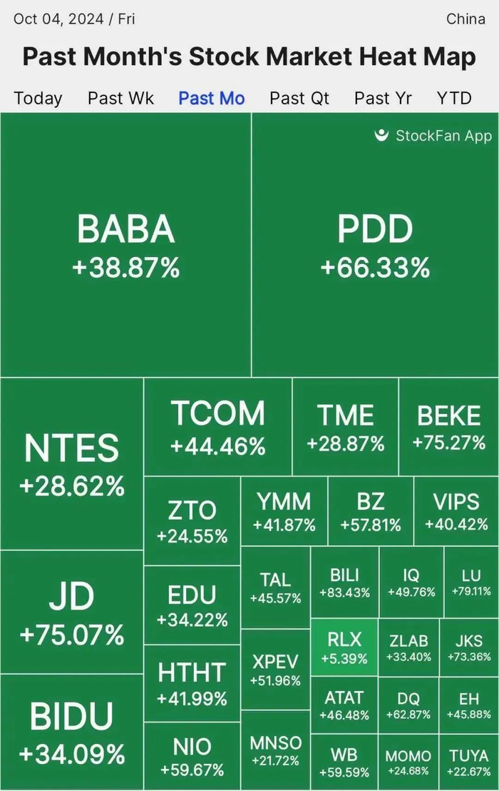 中概股过去一个月涨幅地图