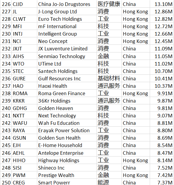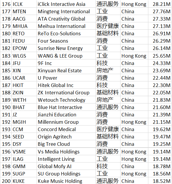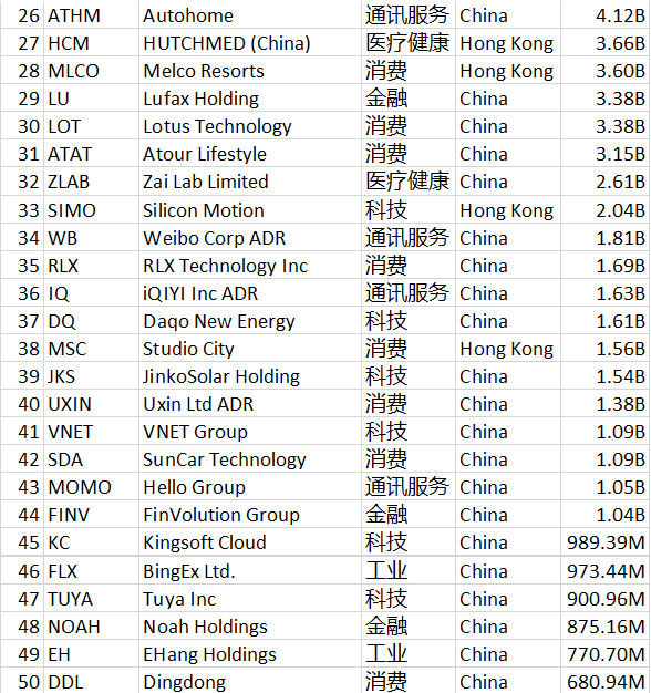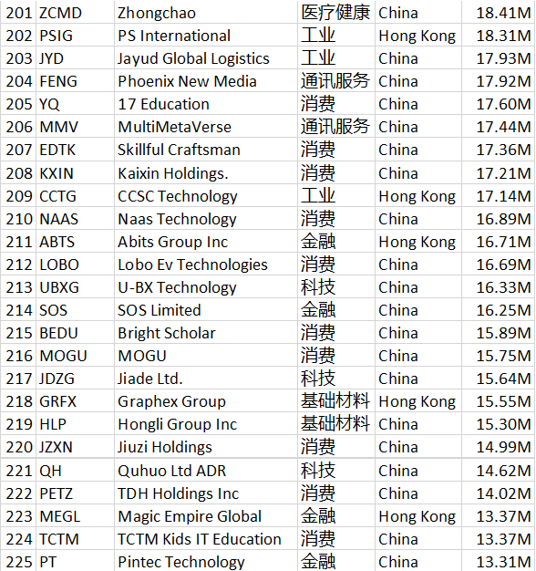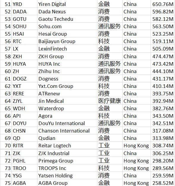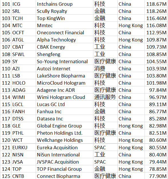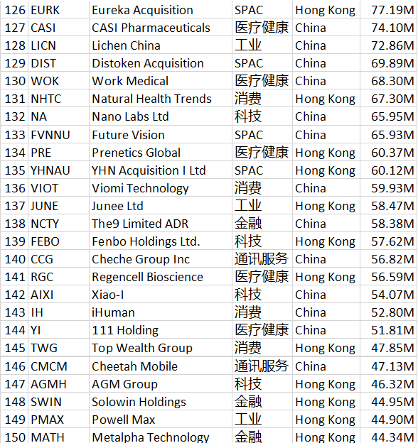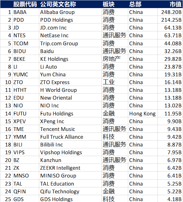 MBMC速报:史上最全!290家中概股汇总,供全球投资者参考