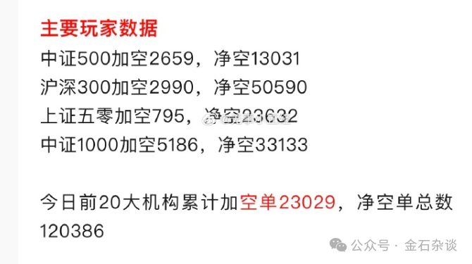 其次,金石杂谈查询wind数据发现,今日前二十大机构累计加了25030手空单,空单总数来到128061手。