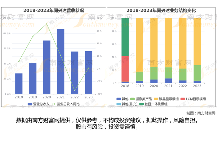 同兴达于2017年1月25日在深圳证券交易所上市,股票代码002845。公司主营业务为主要从事 LCD、OLED 液晶显示模组、光学摄像头模组及半导体先进封测的研发、设计、生产和销售。