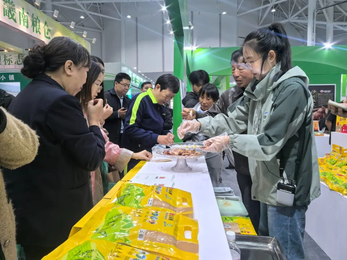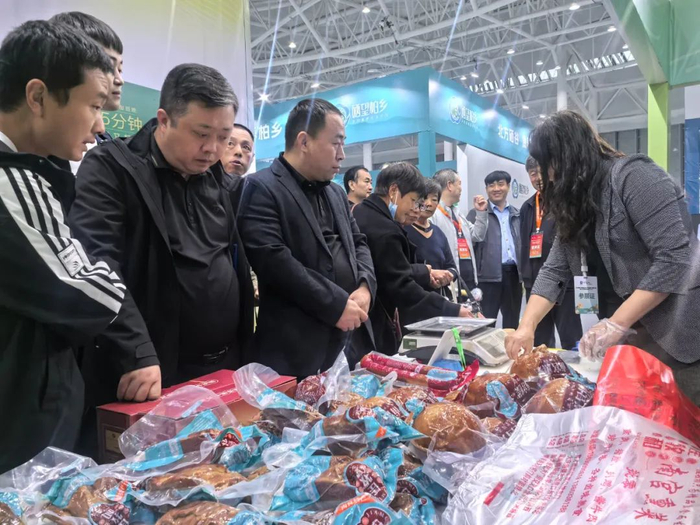食品(农产品)产业发展成果展现场,信都区的兴台酒、威县的威州牛肉、新河县的鲜食玉米等特色产品吸引客商争相品尝。他们还不时与参展企业代表交流探讨,详细了解每一款产品的故事。