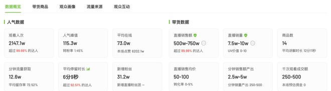 据飞瓜数据显示,听泉首次直播带货销售额高达750万元,观看人次超过2000万。
