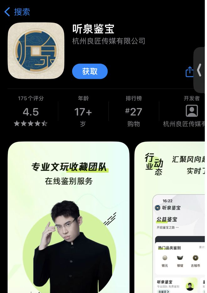 此外,听泉鉴宝还上线了app,包含了鉴别、回收、交易等功能。从版本更新情况来看,该app已上线超过3个月。