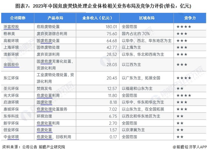 中国危废焚烧处理行业企业布局及竞争力评价
