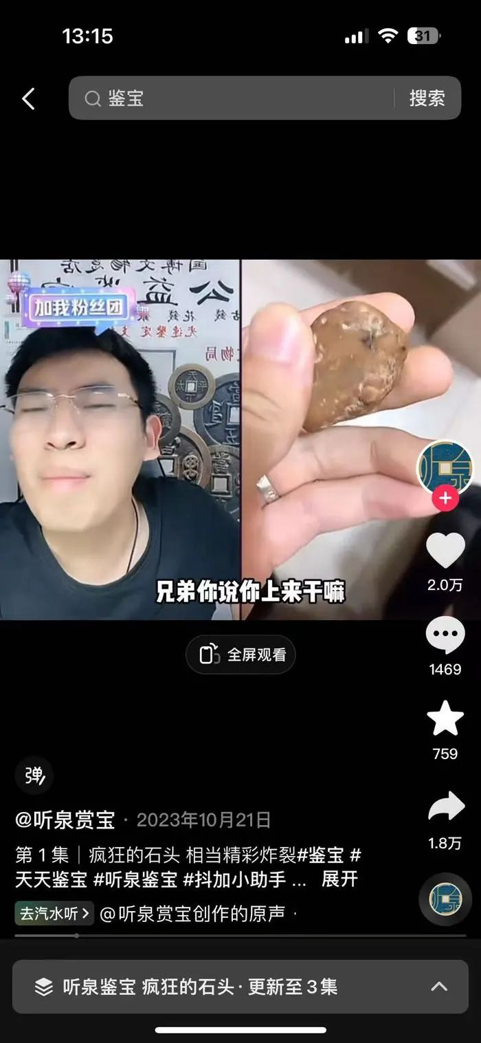 今年年初,听泉鉴宝的粉丝数量还不超过300万。随着名场面的不断传播,迄今其粉丝数量已超过2719万。