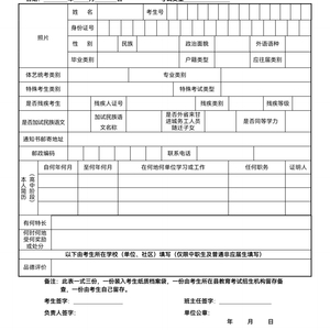 (六)考生填写的表格须经相关部门审查认定后交报名点或教育考试招生机构进行全面审查。考生的学籍、户籍审查登记表是考生报考的重要材料,也是审查考生报考的重要依据,各地教育、公安等部门要对考生填写的内容进行仔细审核确认,共同把好考生的报名资格审查关,审查时要重点核查考生法定第一监护人父母信息及特殊情况顺序监护人信息,确保考生报考信息准确可靠。