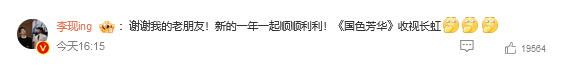 李现也在第一时间前去杨紫的评论区感谢,称呼杨紫为老朋友,同时也为两人合作的新剧《国色芳华》打call。