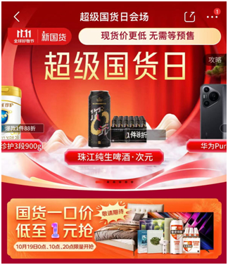 10月19日,京东11.11“超级国货日”活动正式开启。活动期间,京东携手美的、伊利金领冠、LiberLive、阿道夫、阿芙等国货品牌带来海量低价产品,覆盖酒类、美妆、个护、家电等全品类,用户打开京东APP搜索“超级国货日”即可直达会场,海量商品一口价,低至1元抢,数量有限,先到先得。