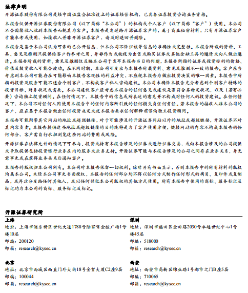 本报告仅供开源证券股份有限公司(以下简称“本公司”)的客户使用。本公司不会因接收人收到本报告而视其为客户。本报告是发送给开源证券客户的,属于商业秘密材料,只有开源证券客户才能参考或使用,如接收人并非开源证券客户,请及时退回并删除。