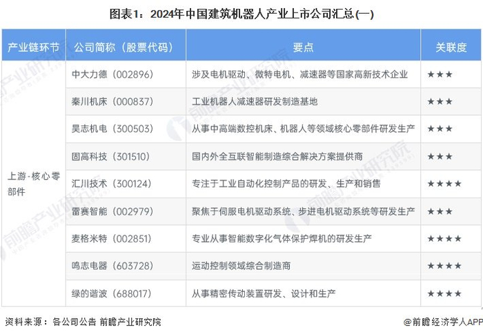 建筑机器人产业上市公司汇总