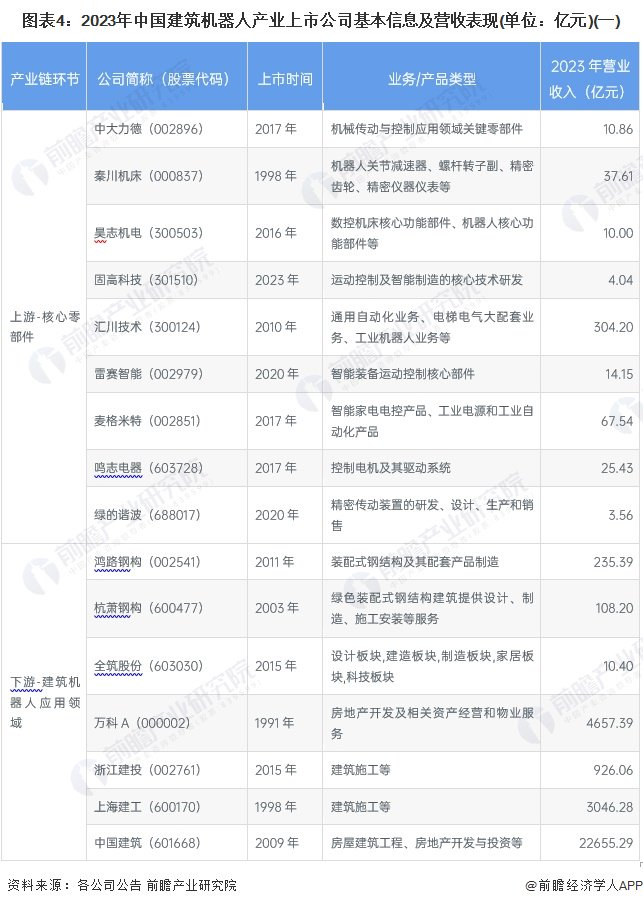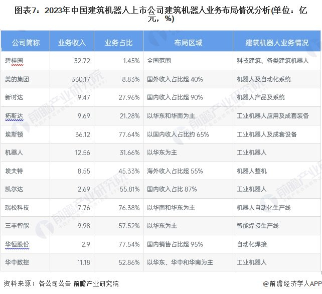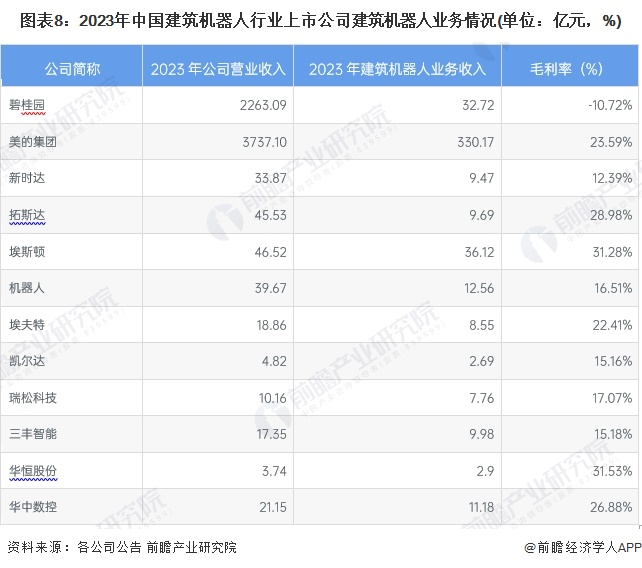 【最全】2024年建筑机器人行业上市公司全方位对比(附业务布局汇总、业绩对比、业务规划等)