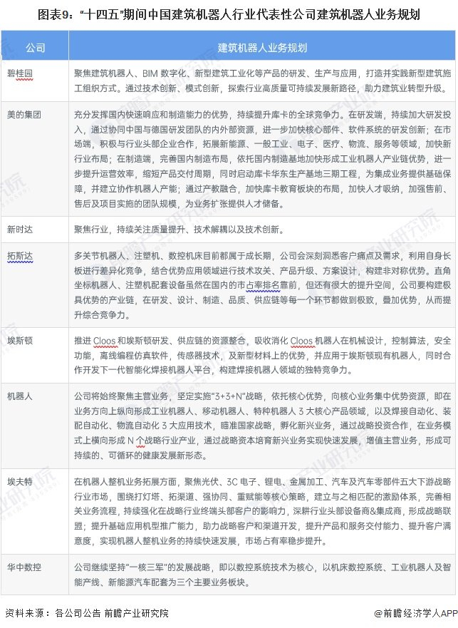 建筑机器人行业上市公司建筑机器人业务规划对比