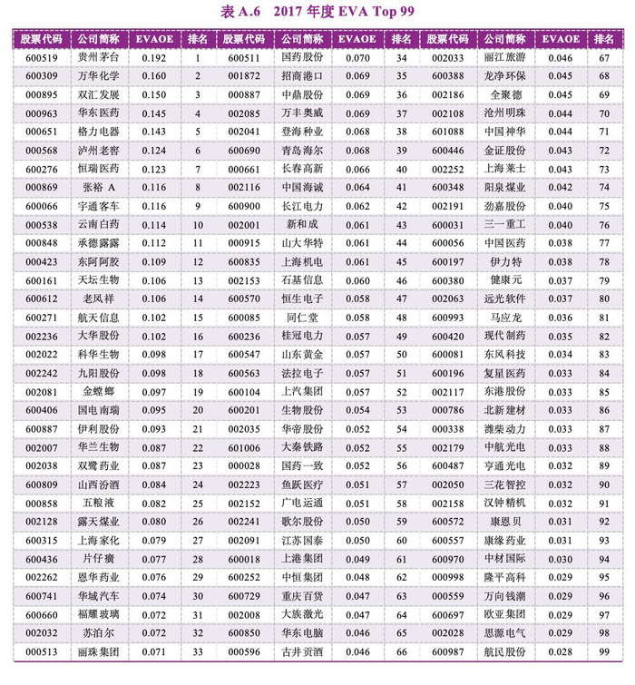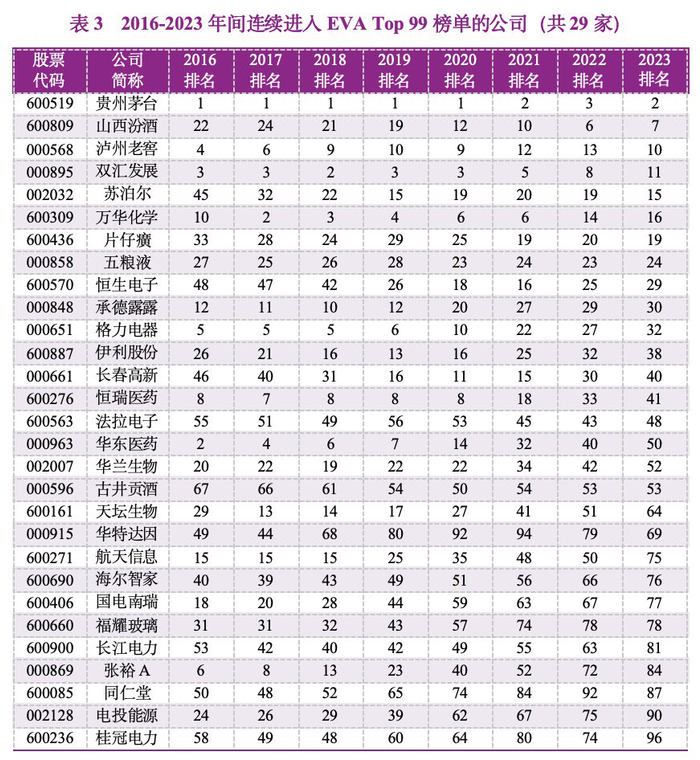 (一)连续八年进入EVA Top 99榜单的公司