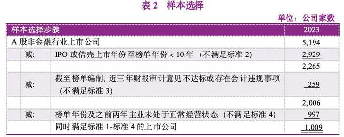 本报告所基于的上市公司统计样本是按照以下标准筛选而得: