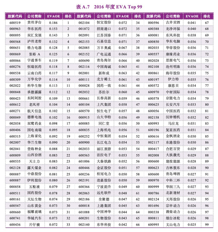 附录A:A股上市公司经济增加值创造力99强榜单(2016-2022)
