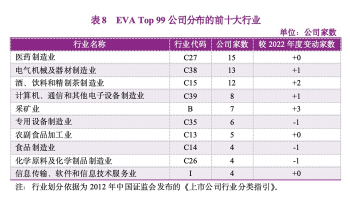 (六)EVA Top 99公司的行业分布