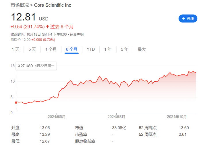 10月20日,报道称,美国比特币矿商Core Scientific自从宣布与AI初创公司CoreWeave签订一系列数十亿美元的合同后,其股票几乎累计涨了近300%。这家矿企将改造其部分数据中心,为CoreWeave托管超过200兆瓦的GPU。