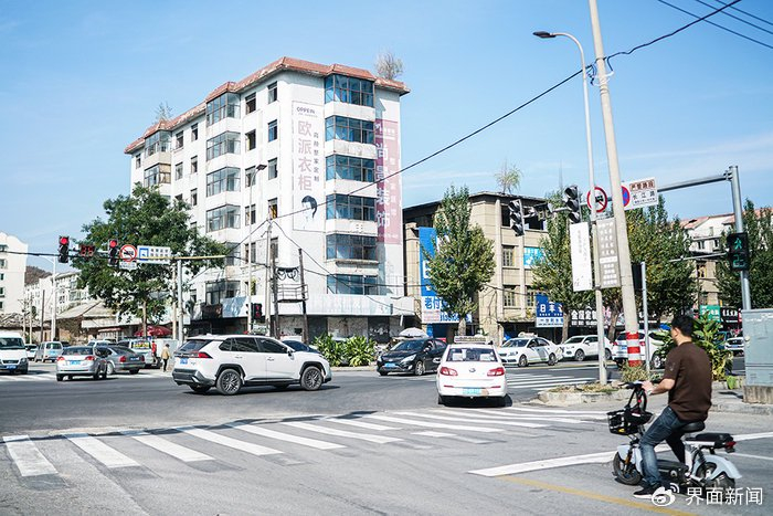2024年10月13日,辽宁省本溪市本溪满族自治县县城小市镇街景,县城里的任何角落几乎都能看到山。每年的10月,大批游客专程到此欣赏山景与红叶。