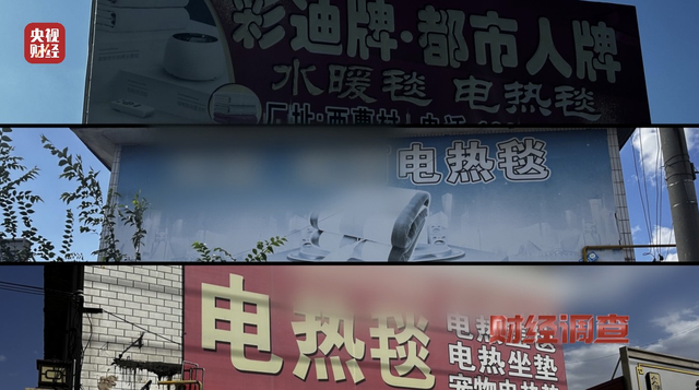 记者留意到,在新乐市道路两边悬挂了很多生产取暖设备的企业广告。其中,许多广告牌上醒目地写着:生产纯国标电热毯、具备中国国家强制性产品认证。