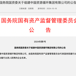 央企近年来不断整合重组,数量持续减少,但近日国务院国资委组建了一家新央企——中国资源循环集团有限公司。