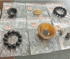 公安机关查获的用犀牛角制作的酒杯、手镯等。