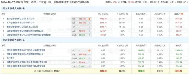 其中,买一为世纪证券有限责任公司广东分公司,买入3832.20万元;买二为东吴证券股份有限公司深圳分公司,买入3832.20万元3675.74万元;买三为爱建证券有限责任公司山东第二分公司,买入1178.74万元。
