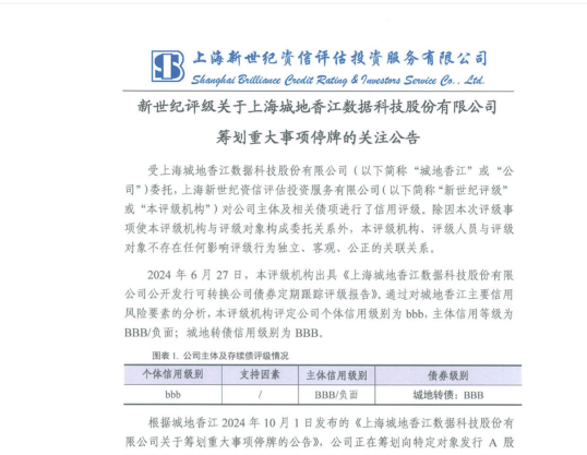 10月10日,城地香江发布公告披露,该公司因筹划向特定对象发行A股股票事宜,该事项可能导致公司第一大股东及控制权发生变更。鉴于上述事项尚存在重大不确定性,为保证公平信息披露,维护投资者利益,避免造成公司股价异常波动,根据《上海证券交易所股票上市规则》、《上海证券交易所上市公司自律监管指引第4号——停复牌》等有关规定,公司于9月30日向上海证券交易所申请自2024年10月8日(星期二)上午开市起停牌,预计停牌时间不超过2个交易日。现相关发行方案已披露,公司按照相关规定申请复牌。