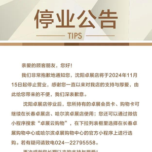 10月15日, 方便突发公告称,将于11月15日起停止营业,停业后,卓展会员卡、购物卡可在长春卓展店、哈尔滨卓展店使用。