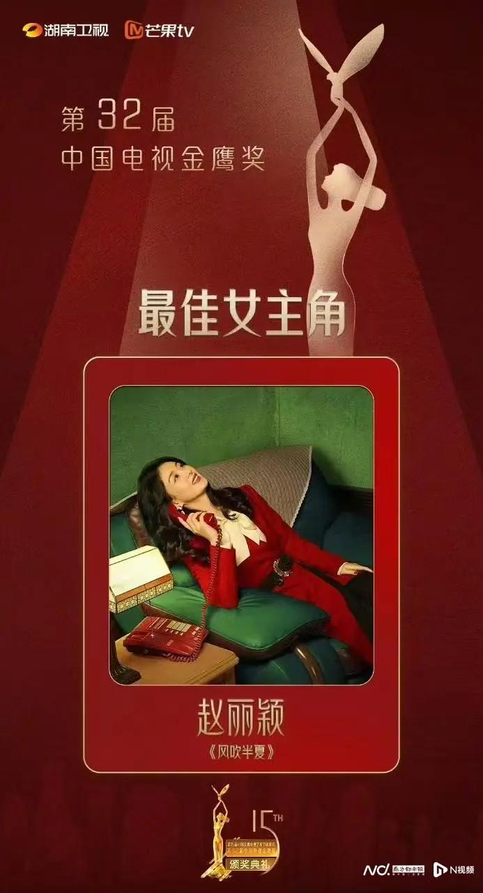 刘琳、李沁、吴越、周迅、赵丽颖、唐嫣获得本届金鹰奖最佳女主角提名,最终由不久前在第34届中国电视剧“飞天奖” 中获得“优秀女演员”奖的赵丽颖,再次凭借《风吹半夏》获得本届金鹰奖的“最佳女主角”奖。