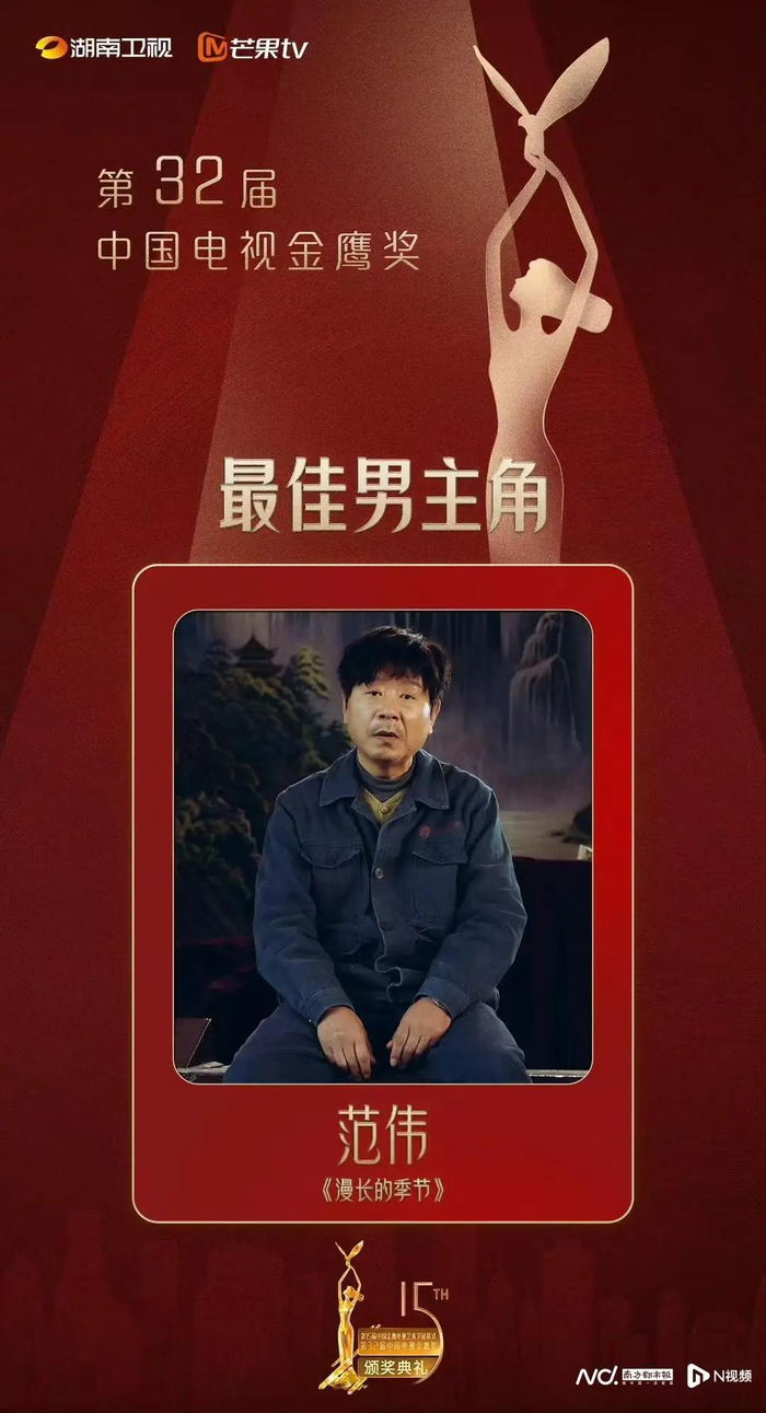 于和伟、李现、张若昀、范伟、胡歌、靳东获得本届金鹰奖最佳男主角提名,最终范伟凭借《漫长的季节》中王响一角获奖。范伟由于身体原因未能到场,由该剧导演辛爽代为领奖。