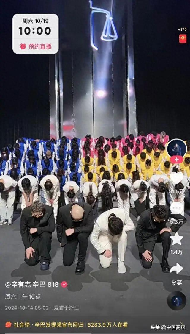 10月14日,辛有志在短视频平台上的账号“辛巴”连发三条视频,高调宣布回归。在视频中,辛有志带领其所有团队成员单膝下跪,面对镜头向所有用户致敬。