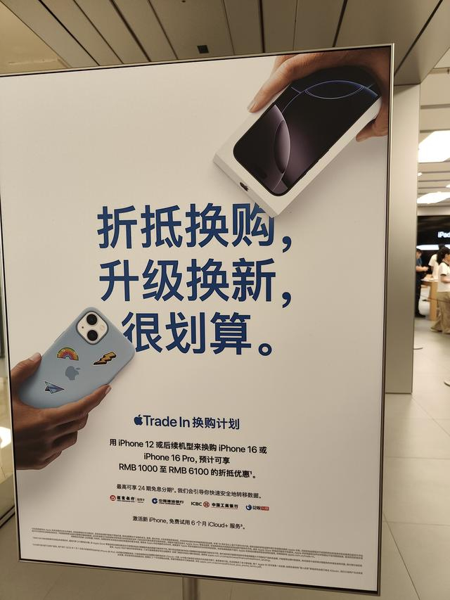 这一波降价以线上门店为主。10月20日晚间,第一财经记者在深圳一家苹果直营店看到,前来看苹果手机和其他产品的消费者非常多,店里挤满了近100名用户。线下门店并未有额外的优惠政策,但为了促进消费者换机,店里正在宣传以旧换新折扣,用iPhone 12或后续机型来换购iPhone 16或iPhone 16 Pro,预计可获得1000元~6100元的折抵优惠。