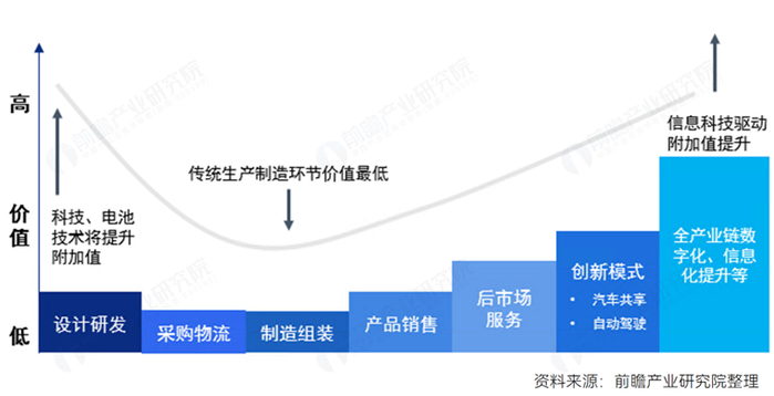发展新能源汽车产业是地方政府培育新动能、产业转型升级、提升城市治理能力的历史性机遇。根据前瞻产业研究院自研的新能源汽车产业大数据显示,从新能源汽车产业链的全景图来看,如果按照上中下游来划分,产业链可以被划为上游的核心零部件,中游的整车制造,以及下游的服务。电池是新能源汽车的“心脏”,直接影响着车辆的续航里程和性能表现,处于新能源汽车产业链的上游环节。