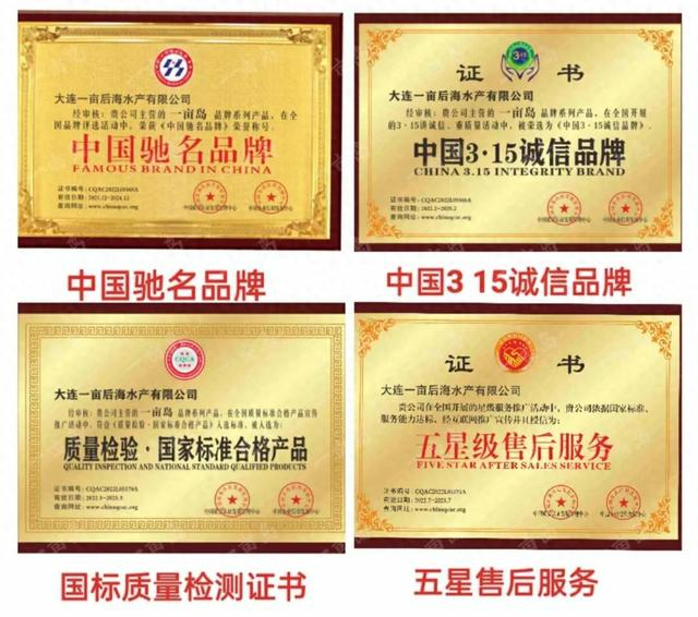 记者长按后出现“一亩岛-老丁海参-源头工厂”的个人微信号(以下简称一亩岛海参),添加后,对方自称做海参20多年,并发来“一亩岛海参承诺书”等资料。随后晒出所在企业“大连一亩后海水产有限公司”获得的“中国驰名品牌”“中国3·15诚信品牌”“五星级售后服务”“质量检验·国家标准合格产品”4个牌匾,颁证单位均是“中国质量认证发展管理中心”和“中国企业信用发展中心”。