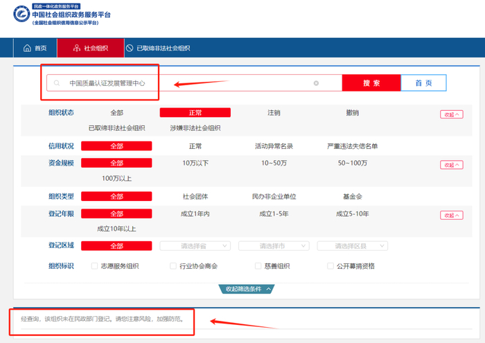 “经查询,该组织未在民政部门登记