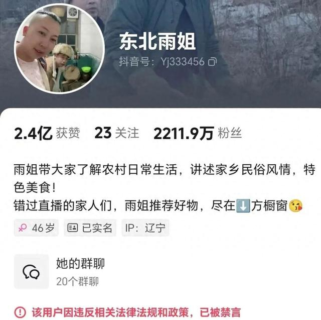突发!“东北雨姐”抖音账号被禁言