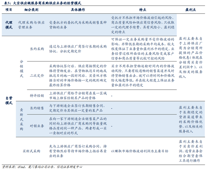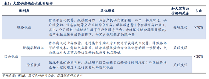 1、大宗供应链模式规避价格波动风险,行业利润主要源自服务收益。