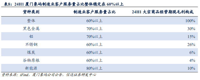1)聚焦制造业客户需求,持续优化客户结构。制造业客户业务来往、货物需求相对贸易商客户更加稳定。2024年上半年,公司制造业客户服务量占比整体稳定在60%以上;其中,新能源供应链80%以上,黑色金属和铝供应链70%以上,不锈钢、煤炭、谷物原粮供应链60%以上。
