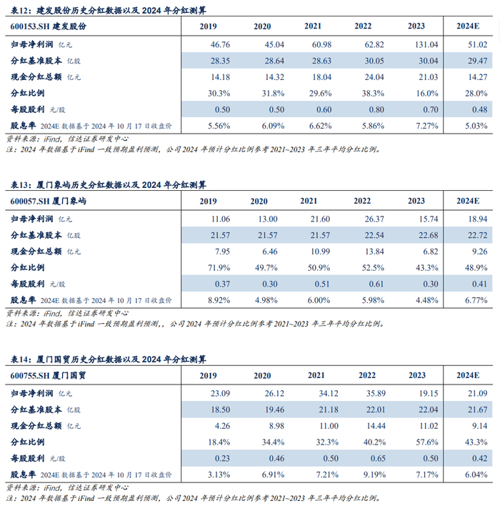 分红比例相对较高,股息率具备较高投资价值。从估值情况看,当前大宗供应链企业的估值水平不高,PE及PB历史估值分位均处较低位置,具备较大估值修复空间。从分红情况看,假设建发股份、厦门象屿、厦门国贸仍能维持此前分红比例水平,对应股息率分别能达到5.0%、6.8%、6.0%,具备一定投资价值。