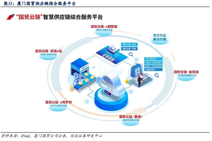 厦门国贸:多元整合资源渠道网络,物流赋能保障供应链运营效率。公司目前拥有“冶金、能化、纺织、有色、浆纸、农产、橡胶、新能源”八条成熟的产业链,可提供以“物流”和“数科”为代表的通用解决方案。