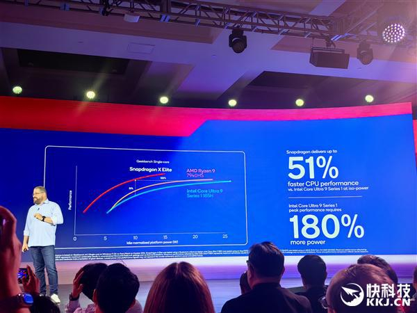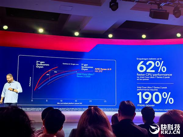 至于AMD最新的锐龙AI 9 HX 370,高通认为它的性能/功耗曲线还不如酷睿Ultra 200V系列,可以达到更高性能但也需要高得多的功耗。