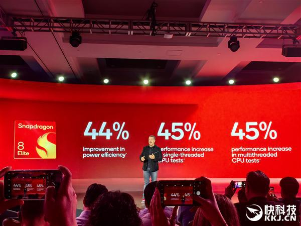 落地到产品上,也就是骁龙8至尊版,对比上代骁龙8 Gen3也是全面飞升:CPU单核性能、多核性能都提升45%,综合性能提升62%,同时能效提升44%。