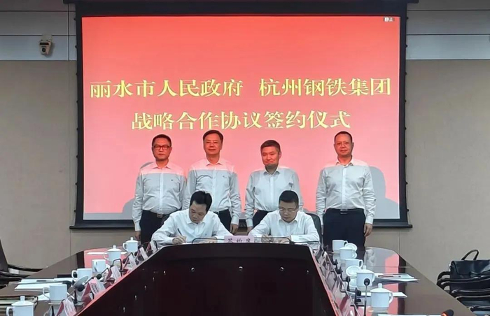 10月15日,杭钢集团与丽水市政府签订深化合作协议。杭钢集团党委书记、董事长章建成,丽水市委副书记、市长朱林森见证签约并讲话。杭钢集团党委副书记、总经理吴东明,丽水市副市长周和平分别代表双方签约。杭钢集团党委委员、副总经理孙宏,丽水市政府秘书长、市府办党组书记胡献如见证签约。双方相关单位(部门)负责人参加签约仪式。